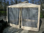 Предлагаем услуги по пошиву новых навесов на беседки (садовые павильоны) и "садовые качели", а также пошив новых сидений к ним, по старым образцам. Предоставляете старый тент и мы делаем его точную копию.
