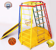 Спортивный уголок "Мини трансформер" Высота - 145см, Ширина/длинна - 154см. Спортивный уголок уголок состоит из: Лестница-Рукоход, шведская стенка, лестница березка, спортивная стенка, лестница под горку синяя, вверх спортивного уголка-шестигранник, в шестигранник ставиться рукоход (желтый), мат детский из ПВХ и поролона, детская горка из влагостойкой ламинированной фанеры, гибкая лесенка деревянная, деревянная качелька и брусья-кольца.