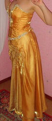 Вечернее длинное платье золотистого цвета. Размер 42-44, регулируется корсетом. Рост 162-172 (зависит от каблука)..