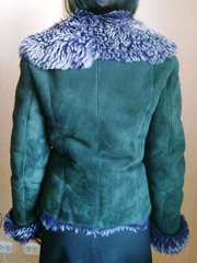Красивая и теплая женская дубленка (коза), про-во Турция . Размер 46-48 , состояние хорошее . Цвет черный ( на фото черный не передался ) , мех сине-сиреневый. |
