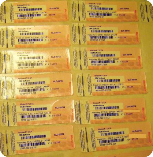 В продаже - лицензионные наклейки Microsoft Windows 7 Professional и Ultimate для регистрации и активации этой операционной системы. Клеятся на корпус ноутбука или системного блока. Клейкое покрытие сохранено. Код проходит активацию онлайн или по телефону. Являются доказательством легальности, хороший и недорогой способ легализироваться. |