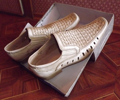 Продам мужские летние туфли. Б/у, но состояние новых. Одеты были один раз на собственную свадьбу. Верх - кожа. Размер 42, длина до самого носочка по стельке 30,5см. Цена 250грн. Торг. Перешлю. |