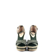 Босоножки изготовлены из текстиля, без дефектов. Стелька из вставок кожи и материала, заметны незначительные следы от носки. На подошве еле-видны следы износа. Общее состояние оценивается как идеальное. Размер: 38 Цвет: Темно-зеленый Материал: Текстиль, натуральная кожа Высота каблука: 12 см. Высота платформы: 3,5 см. Комплектация: Фирменная коробка, дополнительные набойки, чек |