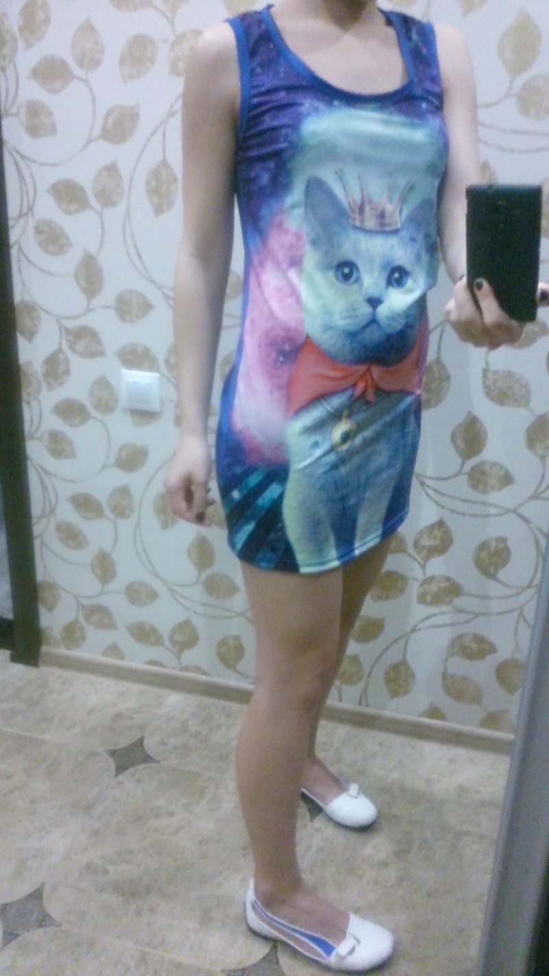 Продам лёгкое милое синее платье с кошечкой - Женская одежда