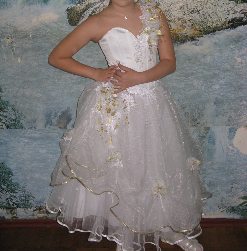 Красивое платье,на корсете со шнуровкой, вышивка золотыми нитками. На девочку-подростка 10-12 лет. Было одето один раз на выпускной. |