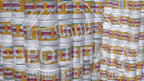 Шпагат полипропиленовый Юта/500 имеет красно-синюю упаковку, 500 м в 1 кг, вес бухты 4 кг, 2000 tex, 2000м, белый, сила разрыва 78 кг.