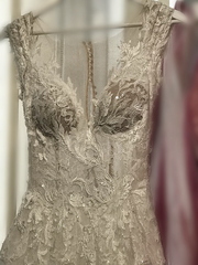 Продам шикарное свадебное платье, в отличном состоянии, как новое. Платье очень красивое, верх обшит бисером, юбка с дорогой ткани, на гипюре ручной работы все вышито пайетками и бисером. Произведено в Италии. |